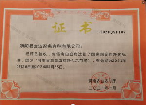 公司簡介 湯陰縣全達(dá)家禽育種有限公司,注冊資金2075萬元。擁有“全達(dá)”牌注冊商標(biāo)。公司占地面積600畝,擁有五座存欄2萬套祖代雞養(yǎng)殖場,一座存欄